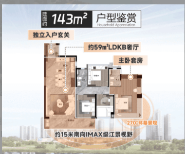 建面143㎡的四房两厅两卫户型,整体方正大气,过道面积紧凑不浪费,最大限度地提升了空间利用率。主卧套房设计是其一大亮点,不仅带有独立的卫生间,还配备了宽敞的衣帽间。这对于爱美的女主人来说,简直是一个梦幻般的存在。她可以将自己心爱的衣物、包包、鞋子整齐地收纳其中,每天都能像明星一样挑选穿搭。主卧的私密性得到了极好的保证,让您在繁忙的工作之余,拥有一个完全属于自己的放松空间。此外,该户型的厨卫全明设计避免了采光死角,让厨房和卫生间也能享受到阳光和清风。部分房源还可享有江景视野,坐在窗前,看着滚滚东逝的珠江水,心情瞬间变得开阔起来。